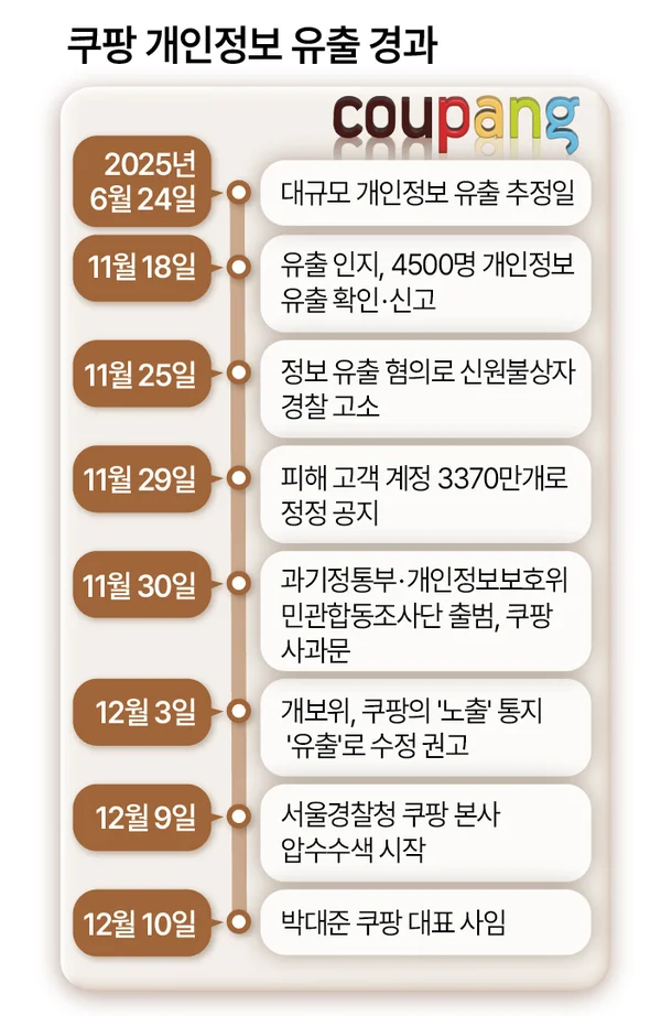 쿠팡 개인정보 유출 경과 (이미지 출처 해럴드경제) |