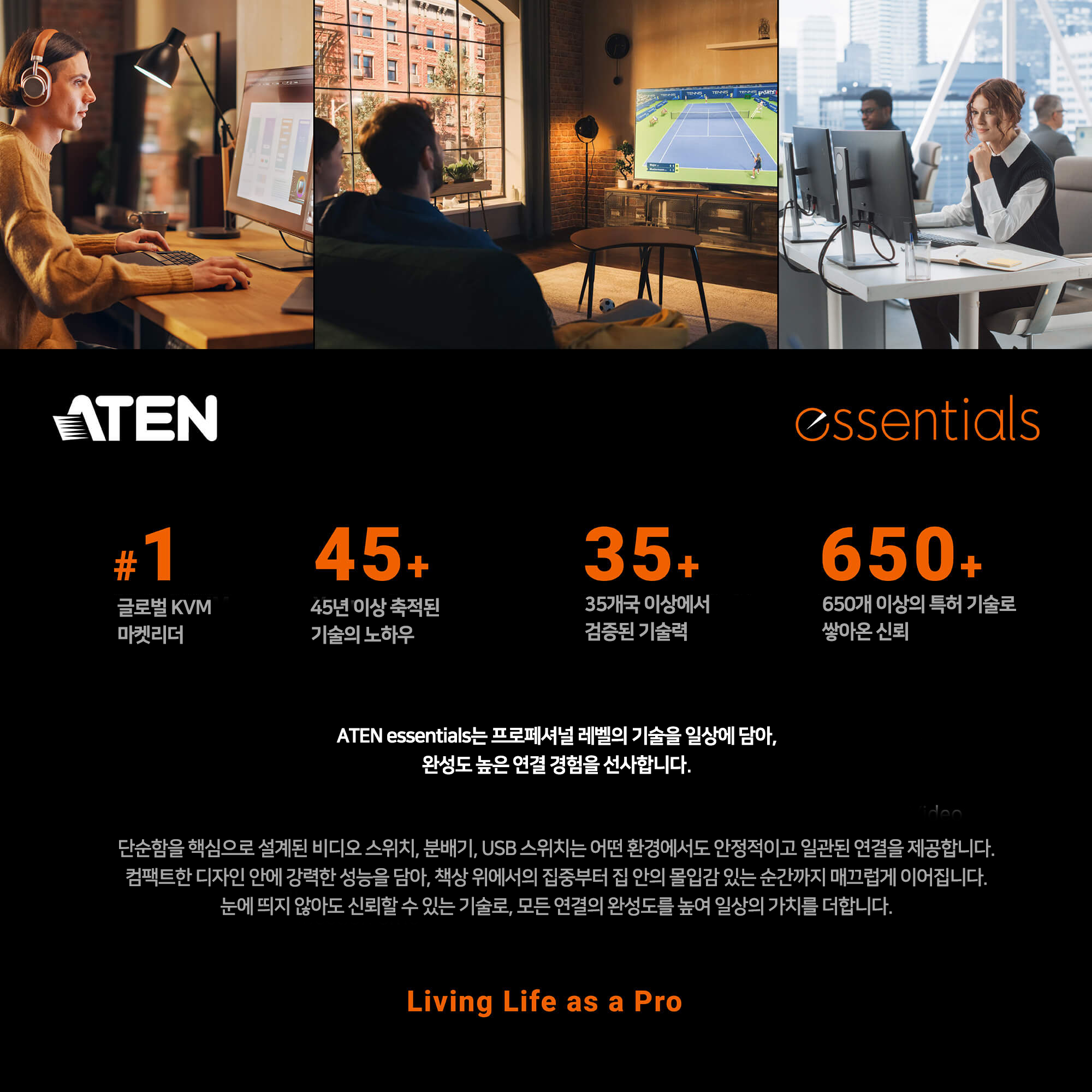 프로페셔널 기술을 일상 속 경험으로 확장한 새로운 라인업 ATEN essentials이 곧 출시됩니다!